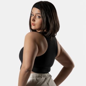 High Neck Racer Bra Black Sport Wears